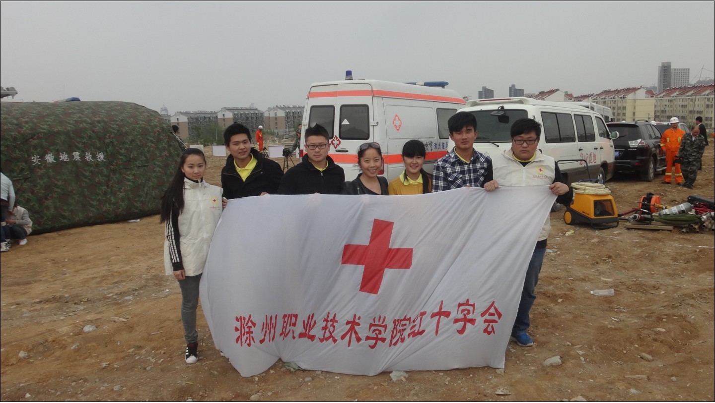 4月18号下午,由滁州市地震局承办的皖北片地震应急救护培训演练活动在我市举行。我院红十字会应急救护小分队的同学们作为滁州市红十字医疗救护队的成员参加了此次活动。