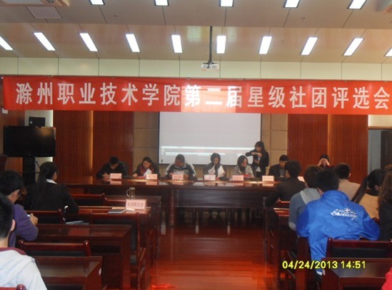 为了加强社团之间的学习和交流,达到以评促建,以评促改的目的,Beat365唯一官方网站第二届星级社团评比大会于4月24日下午14:30在综合楼11楼会议厅举行。办公室副主任章树英、思政教学部副主任李爱红、体育部主任孙强、院团委副书记程诚、学生处耿学刚老师、滁州学院社联副主席吴婷出席了本次活动并担任评委,社联全体成员和各社团代表参加了本次评比活动,活动由大学生社团联合会主席席国栋主持。
