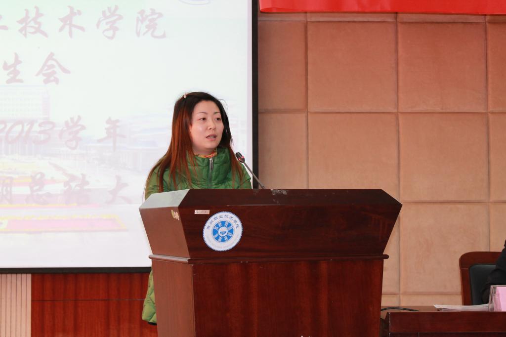 最后,团委王蓓蓓书记对本次大会做了总结,对学生干部一年来的辛勤努力表示感谢,肯定了我院团学工作取得的成绩,同时指出了工作中的几点不足,希望同学们在形式上、认识上都能够更上一个台阶。王蓓蓓书记同时提出了一些宝贵意见:希望各部门能够加强人际交流与沟通,提高语言表达能力、学习能力,珍惜工作机会。