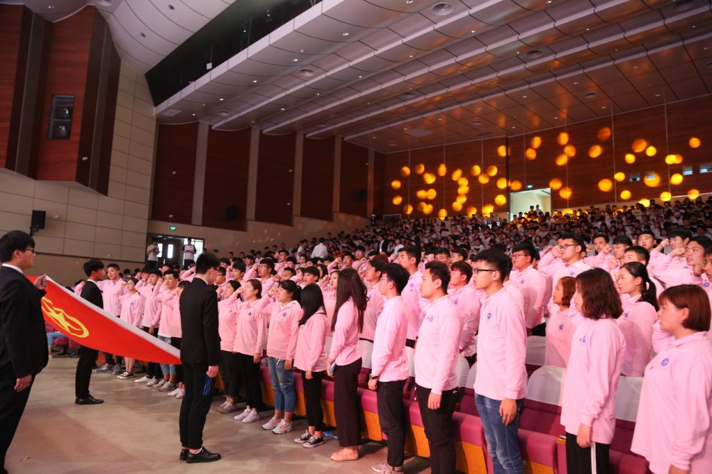 大会在雄伟庄严的国歌中拉开帷幕。在王雪晨同学的带领下,全场新老团员一起重温入团誓词。院团委副书记程诚宣读了《关于表彰2017年度活力团支部、最美团支部书记、优秀团干、优秀团员决定》,与会领导向2017年度团的工作中表现出色的先进集体和个人代表颁发了荣誉证书。