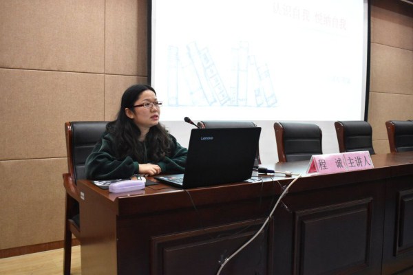 程老师的报告蕴含了人生哲理,给同学们以人生启迪,会议指出三点:1、认识自我 2、了解自我 3、接纳自我。让同学们有自我意识,不要随意跟风,有自己的思想能力,有辨别是非的能力以及建立健康正确的自我形象。
