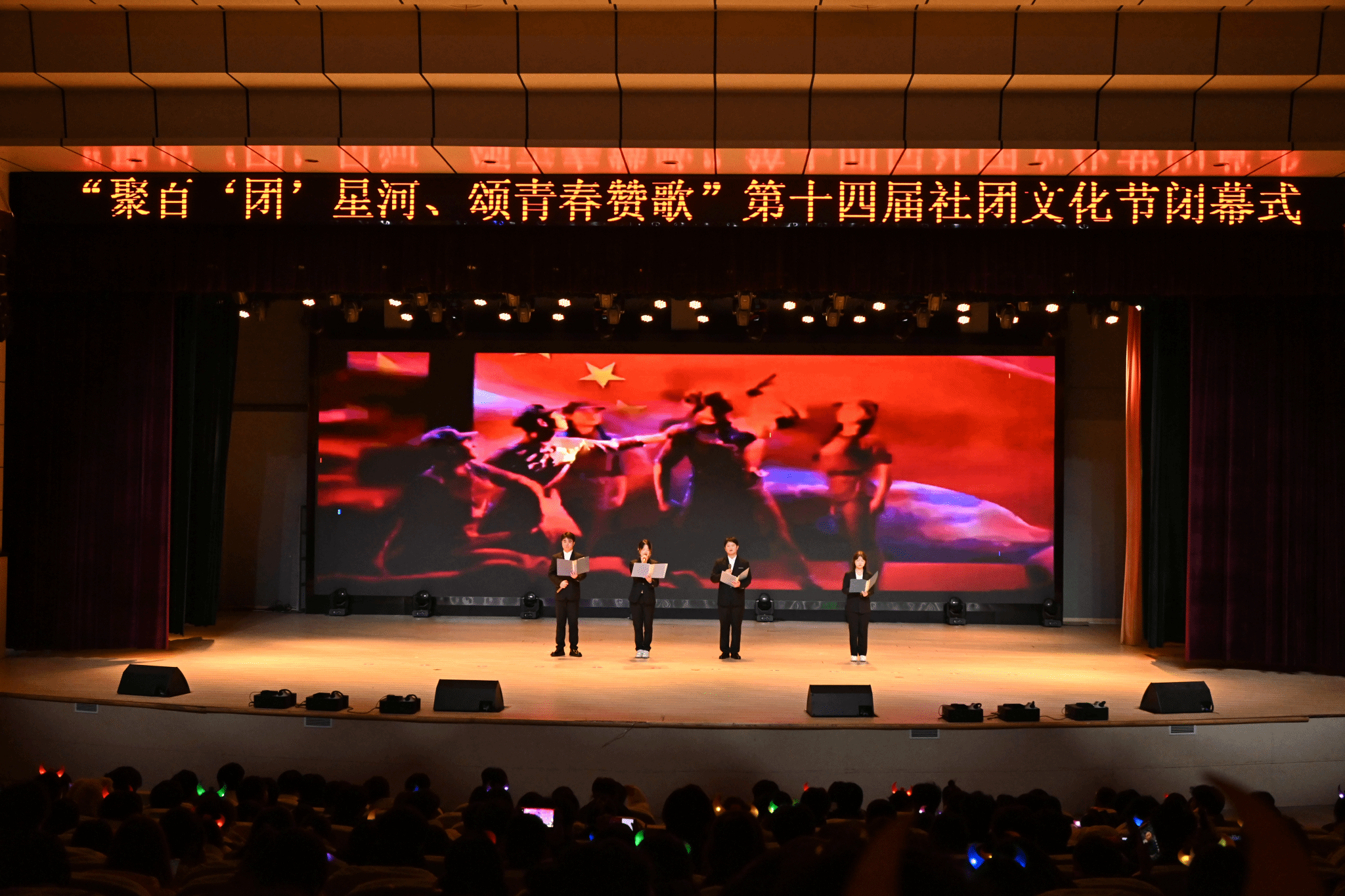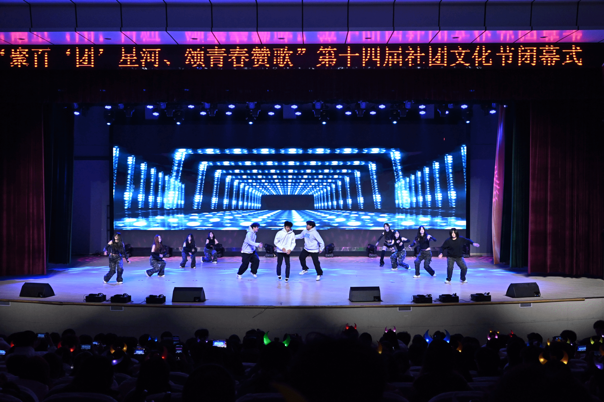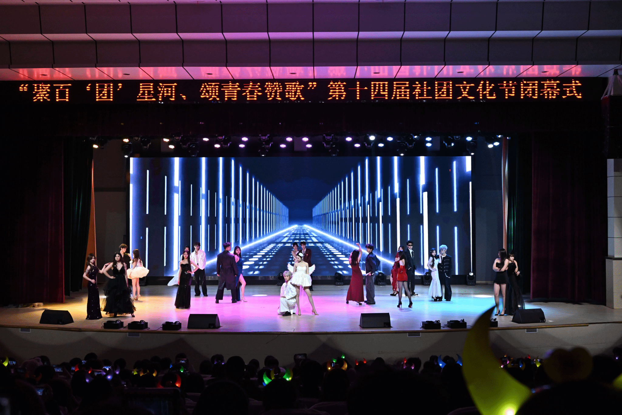 12月20日晚,由校团委主办、大学生社团联合会承办的第十四届社团文化节闭幕式在Beat365大礼堂隆重举行。团委全体成员及900名社团代表成员观看演出。