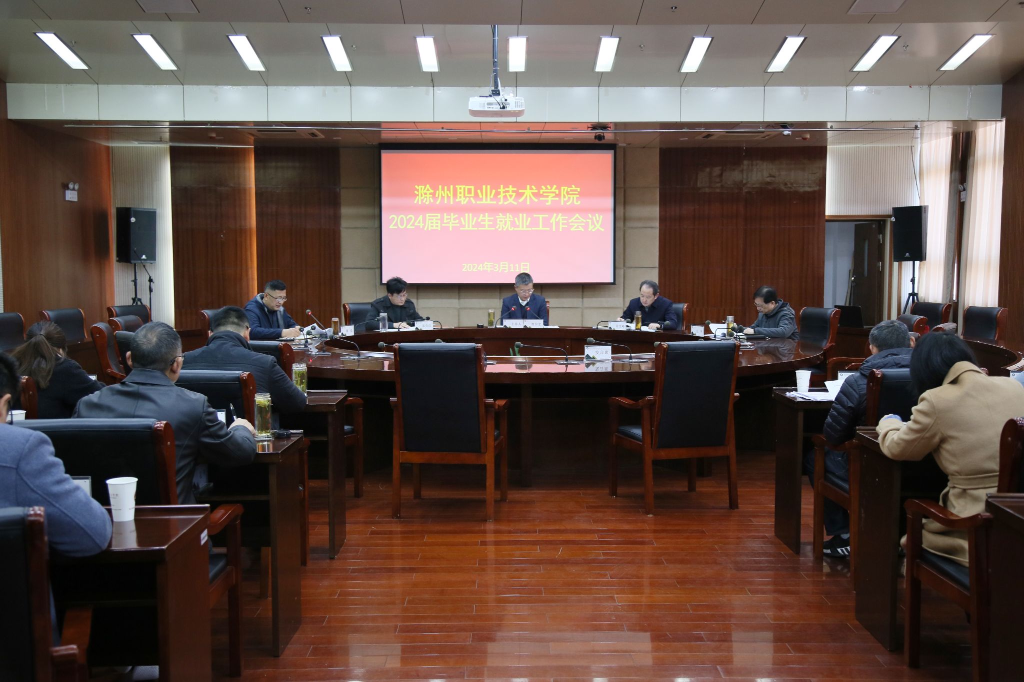 曹付忠指出,由于今年的毕业生总量达历史新高,以及受宏观经济形势、技术进步和产业升级等多种因素影响,企业用工需求参差不齐、增量不足,今年毕业生就业工作形势比较严峻。就业情况是学校的核心办学指标,也是双高校建设的重要任务。全校上下要把就业工作作为重中之重摆在突出的位置,在思想上高度重视,提高紧迫感和危机意识,按照学校就业工作方案的部署,抓好各项工作的落实,确保就业工作取得预期目标。针对2024届毕业生就业工作的具体要求,曹付忠强调,一是组织领导再强化,校领导、二级学院党政领导发挥好带头作用,招就处做好牵头、指导、协调、帮扶等相关工作,相关部门发挥好职能作用,形成合力;二是工作进度再加快,毕业生就业工作时间紧迫,要加快具体工作的实施,定期通报就业工作进展情况;三是工作计划再细化,将工作安排进一步细化到月、周,以日保周、以周保月,持续发力;四是宣传培训再强化,要向社会、企业宣传学校人才培养情况,向学生宣传滁州的发展,提高在滁就业率,服务本地经济发展;要加强对学生的择业教育,引导学生树立正确的择业观;五是兜底帮扶更精准,各二级学院要摸清底数,对困难学生实施精准的帮扶措施;六是校企合作再深化,要走进企业,了解企业对学校人才培养的诉求,有针对性地修订人才培养方案,使合作企业库服务于就业。