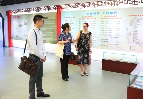 座谈会后,伊莱恩罗伯逊一行参观了我院校史馆、大学生孵化基地、学生宿舍和食堂。