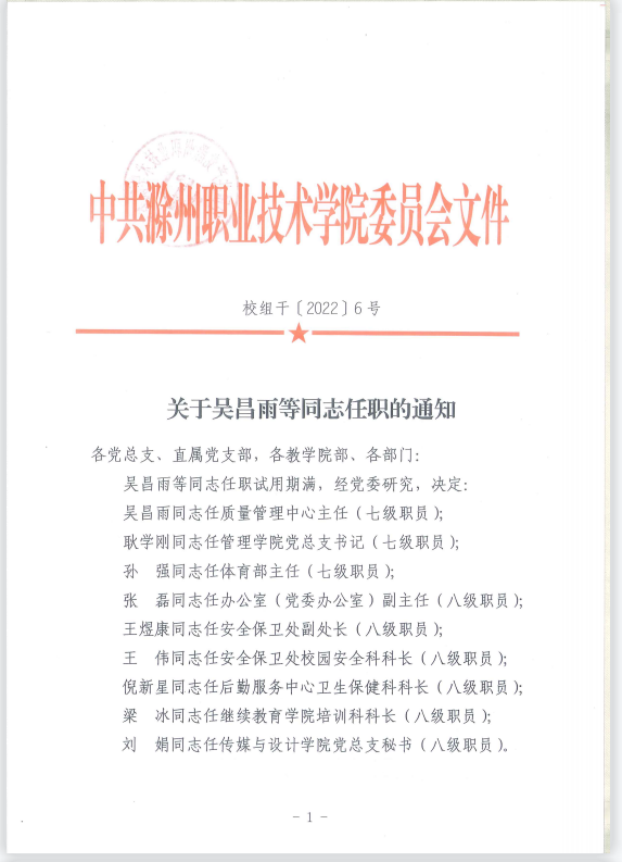 关于吴昌雨等同志任职的通知