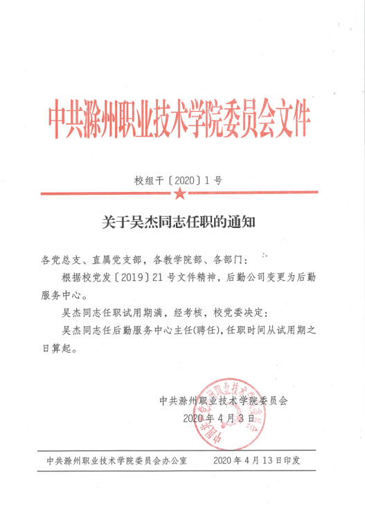 关于吴杰同志任职的通知