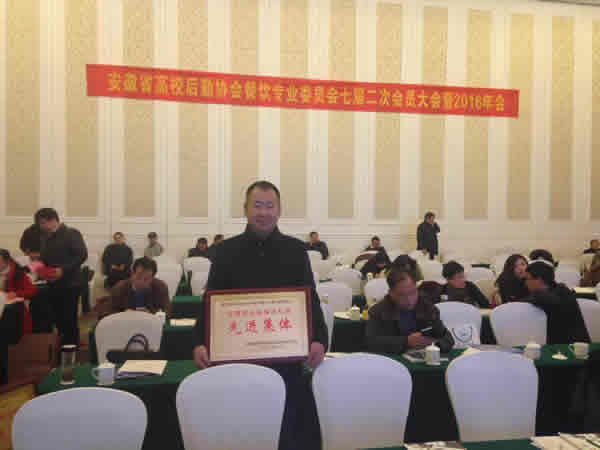 安徽省高等院校后勤协会餐饮专业委员会七届二次会员大会暨2016年会于?xml:namespace>2016年12月28日在巢湖召开。会上,省高校后勤协会对全省高校餐饮先进集体和先进个人进行了表彰。我院后勤服务总公司被评为2015—2016年度安徽省高校餐饮行业先进集体,王书籍同志被评为先进个人。这是自2014年来我院连续第二次获此殊荣。