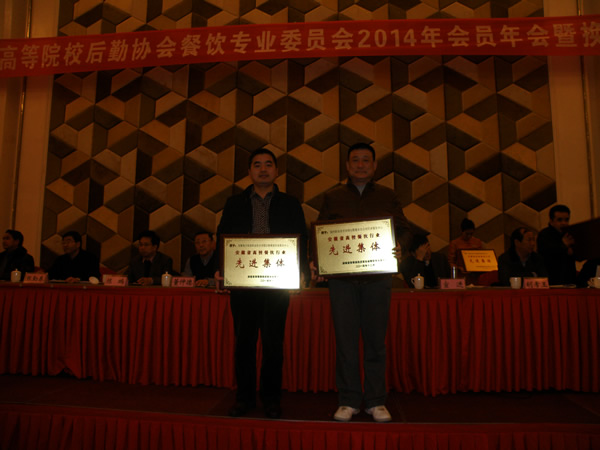 在省高校后勤协会餐饮专业委员会2014年会员年会暨换届大会上,我公司餐饮管理中心被省高校后勤协会餐饮专业委员会评为“先进集体”光荣称号,餐饮管理中心胡永光被评为“先进个人”光荣称号,充分体现上级管理部门对学院食品安全管理工作的肯定。