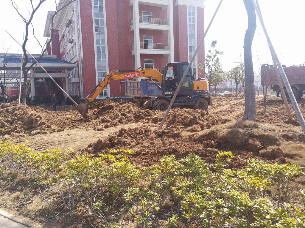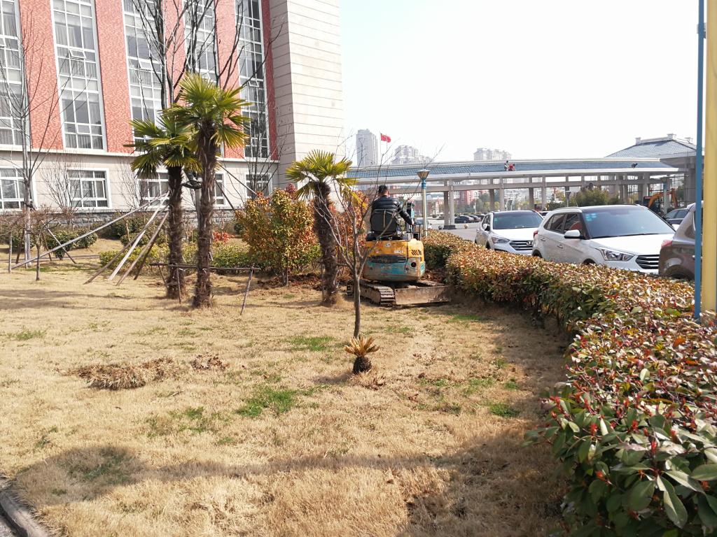 春回大地,万物复苏。在全国第41个植树节即将到来之际,根据学校2019年校园绿化计划,后勤公司积极联系中标单位,布置落实绿化项目,抢时间,抓季节,开展校园绿化栽植工程。3月 5 日,绿化工程按期开工,将对学校广场及校园教学楼、宿舍楼周边绿化带约27800m2进行绿化改造升级,更换草坪,增加乔、灌木的数量和板块面积。