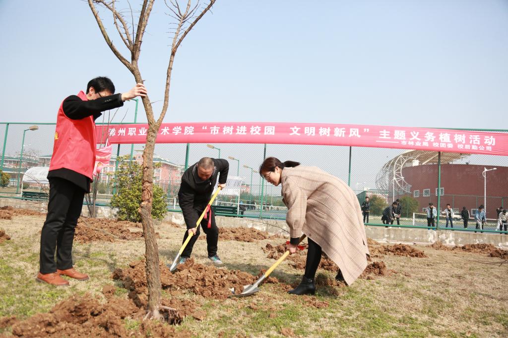 阳春三月,草木秀润。3月11日,由滁州市林业局、校工会及后勤服务总公司组织开展的“市树进校园·文明树新风”主题义务植树活动如期举行,校“小青亭”志愿者及各系部师生参加了植树活动。