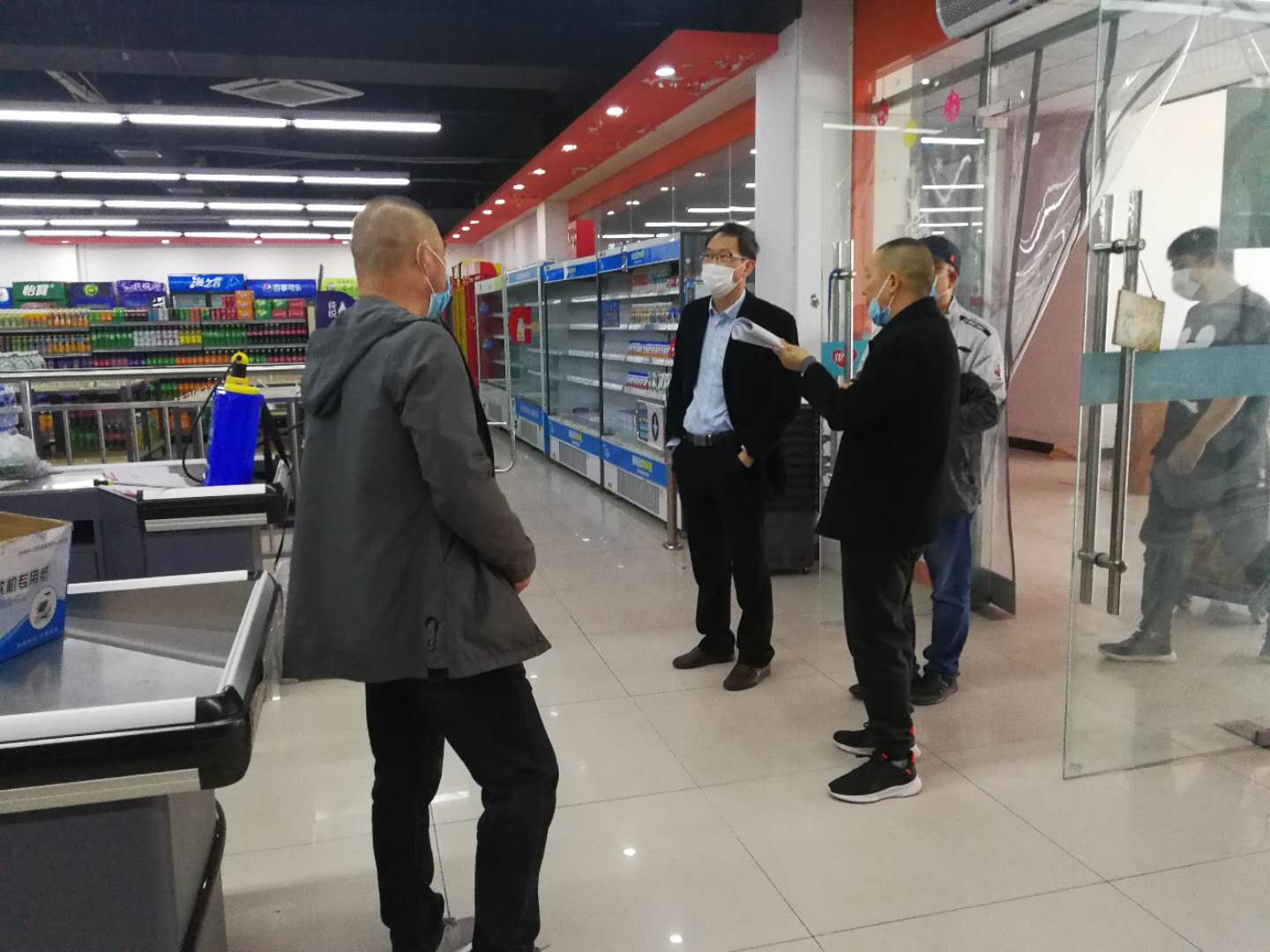 4月28日上午, 校长、校新冠肺炎疫情防控领导小组组长许雪峰深入后勤检查指导春季开学生活服务保障准备工作。总务处、后勤服务中心及相关部门负责人陪同检查。