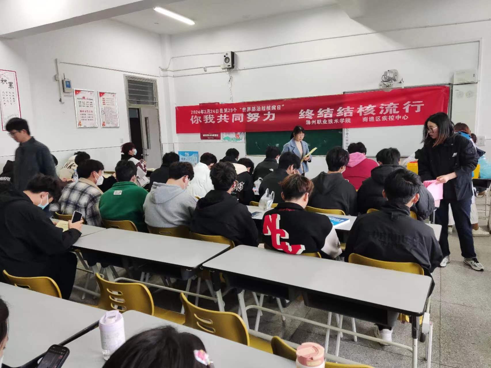2024年3月24日是第29个“世界防治结核病日”,宣传主题是“你我共同努力 终结结核流行”。为有效预防结核病,进一步提高师生防控结核病的意识,3月25日,后勤服务中心邀请滁州市南谯区疾病预防控制中心结防科科长卢正娇来校开展“世界防治结核病日”主题宣传活动。