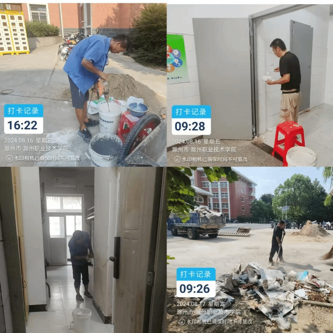 暑期各项维修工作紧锣密鼓开展,时间紧、任务重,维修人员战高温、斗酷暑,完成食堂、宿舍、浴室、超市、快递站等服务场所升级改造和维修工作,并配合完成公寓日常水、电、木、土及公寓楼整修工程,做好各公共场所消毒、消杀等工作。