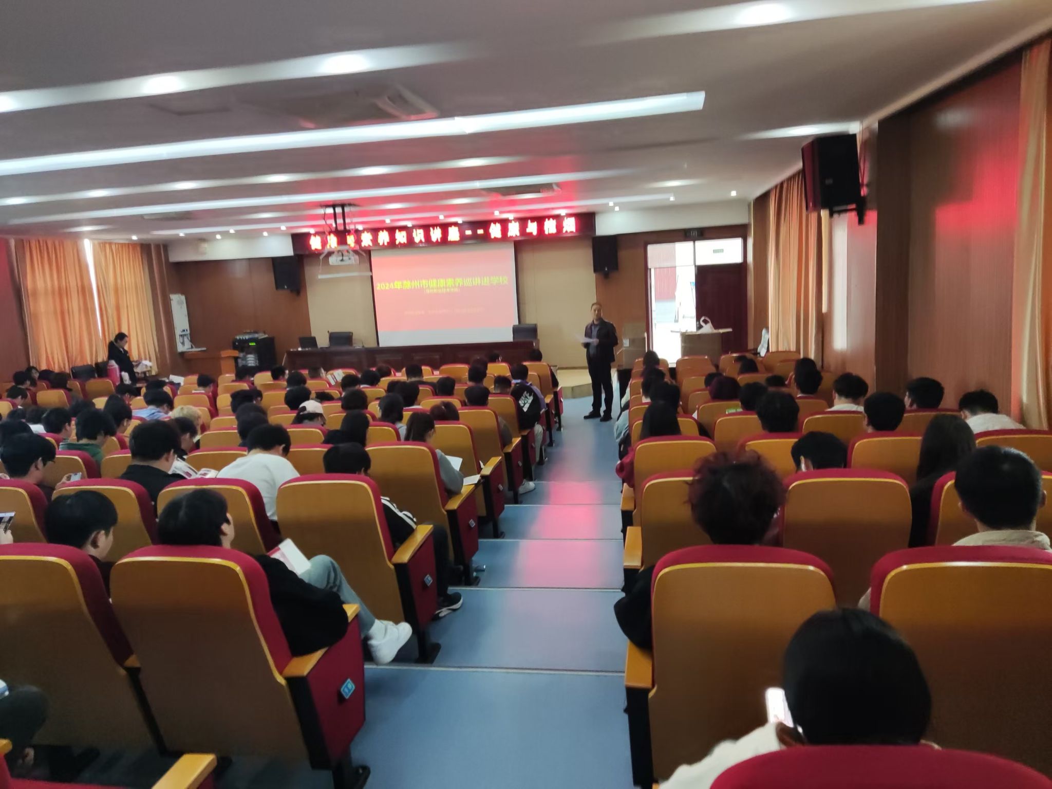 为普及健康知识,提升在校大学生的健康素养,2024年10月23日,后勤服务中心邀请市健康素养巡讲团到校开展健康素养大讲堂活动,为学生们送上精彩的健康知识科普讲座,传播健康知识,树立健康理念,倡导健康文明生活方式。此次活动在南阶205室举行,由后勤服务中心主任顾宏才主持,共200名师生聆听讲座。