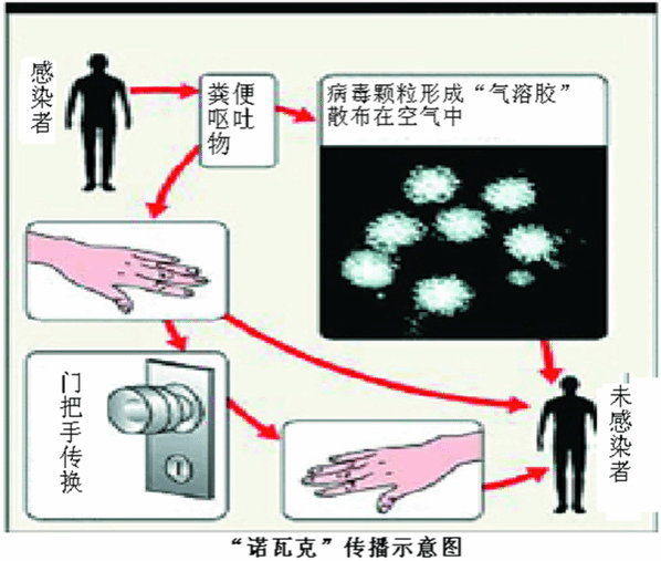 粪-口途径是主要传播方式,也可以通过污染的水源、食物、物品、空气等传播。由于病人的呕吐物和粪便可形成气溶胶,与病人接触可传染。