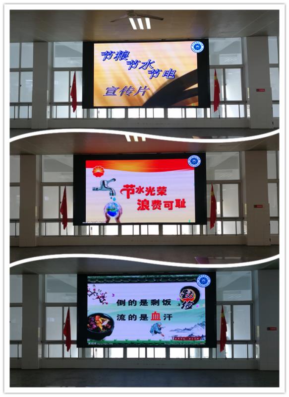 2019年11月8日,由校后勤服务中心牵头,在学生公寓组织开展“节能需要你我他,节粮节水靠大家”的签名活动,同时在食堂LED大屏进行“节粮、节水、节电”宣传片滚动播放。此次活动,以建设节约型绿色校园为目标,在师生中大力宣传“节粮、节电、节水”的重要性,进一步增强全体师生员工的节能意识,增强师生勤俭节约、反对浪费的节约理念,促进良好生活行为习惯的养成,建立节能长效机制,推动学校各项工作全面、协调、可持续发展。