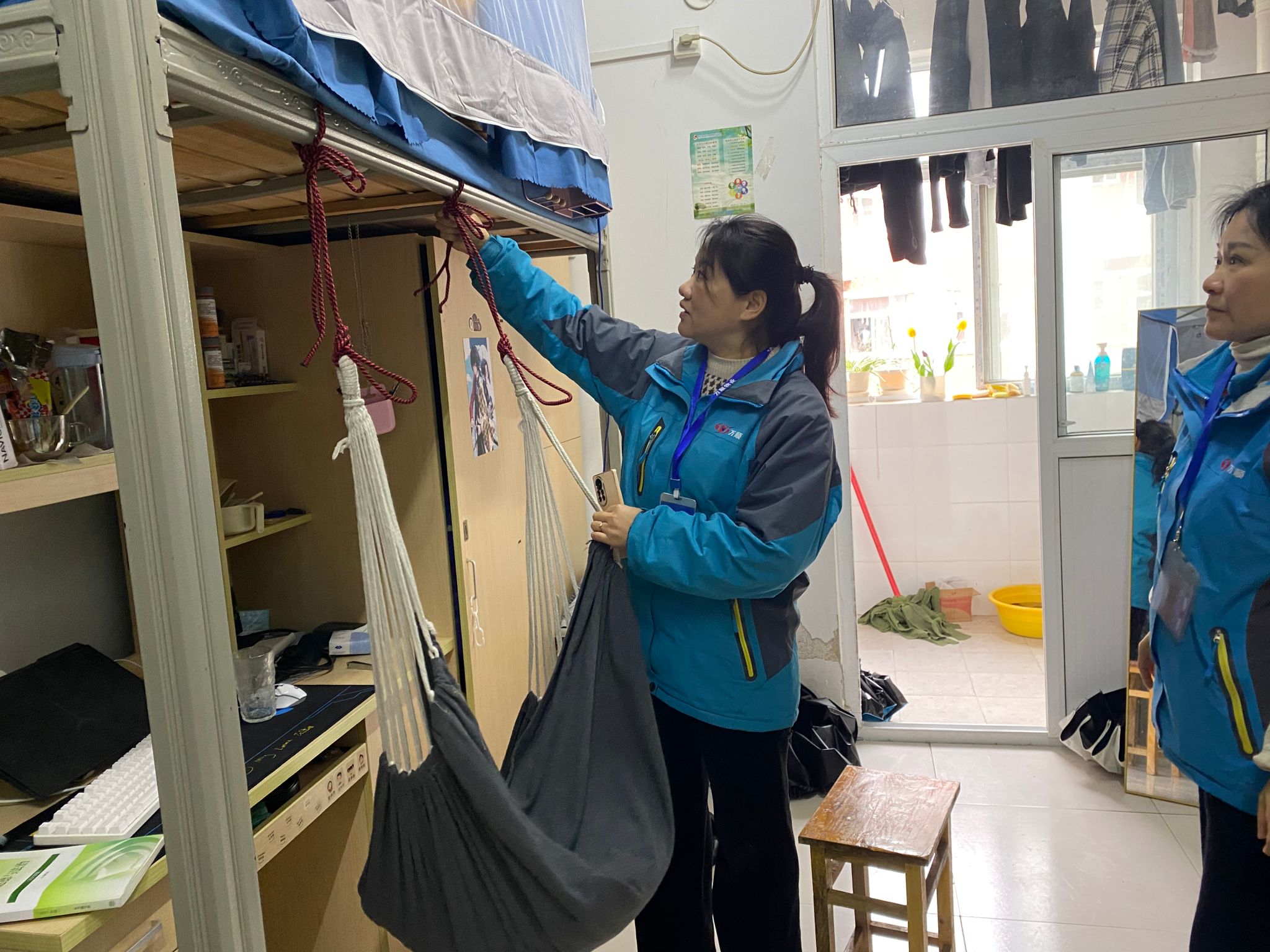 在检查中重点督查寝室内的私拉乱接、吊床、违章电器、饲养宠物等情况,检查人员细致排查各类安全隐患,耐心向学生进行安全教育宣传,对使用的吊床进行了当场拆除,使用的违规电器按学校相关规定进行了没收处理。
