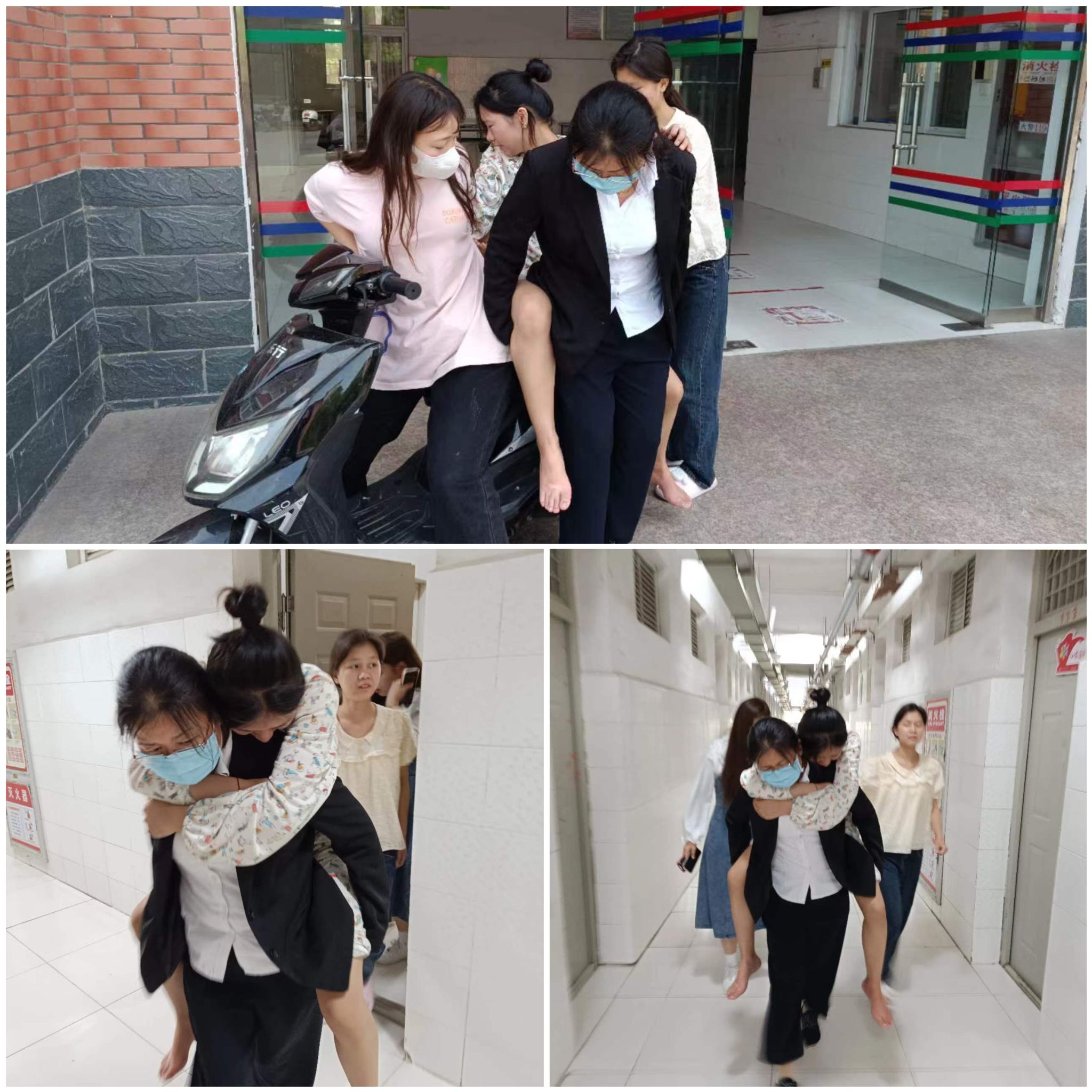 4129寝室食品与环境工程学院22园林2班扈婉婷被开水烫伤,同寝室同学吓得赶紧报告给宿管,宿管夏广琴虽然才入职一个多月,但她一直坚持“学生无小事”的服务理念,立即冲进学生寝室背起学生协助送学生去医院处理伤口。