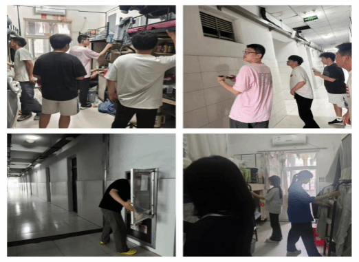 上午10时,体验者们来到公寓值班台,系统学习人员登记流程、人员出入检查要点,并协助维修人员开展相关工作。随后,在宿管人员的悉心指导下,他们又投身到宿舍楼入口区域清洁、各楼层公共区域垃圾清扫以及玻璃擦拭等工作中。志愿者们分工明确、相互配合,手持清洁工具,不放过任何一个角落,高效且高质量地完成了各项清洁任务,充分展现了良好的团队协作精神与劳动素养。