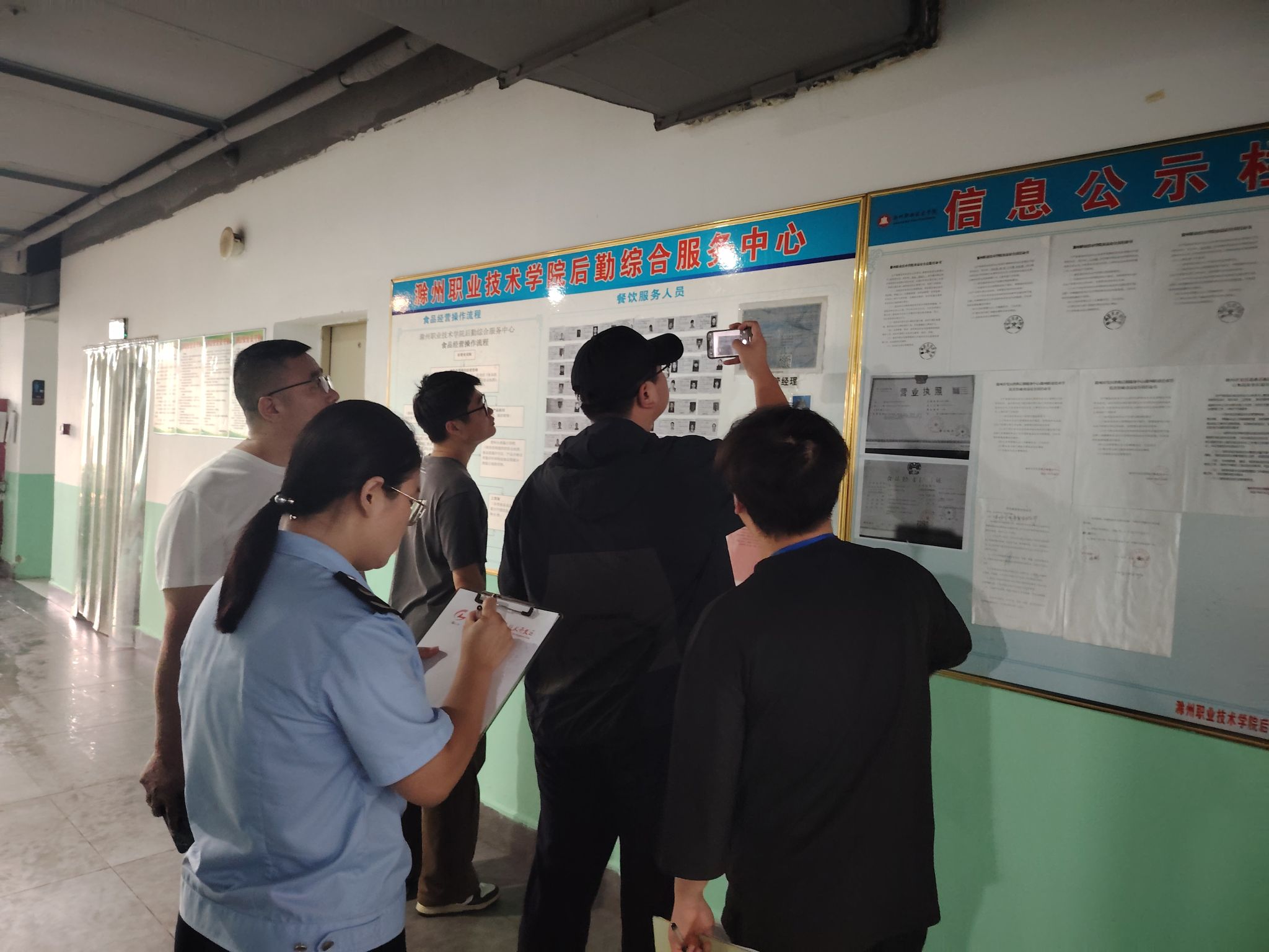 为进一步强化学校食品安全监管,消除食品安全隐患,护航秋季开学,确保师生吃上“放心餐”。9月12日上午,滁州市经开区市场监督管理局徐龄科长率队来校开展食品安全专项检查。后勤服务中心主任顾宏才及餐饮科人员陪同检查。