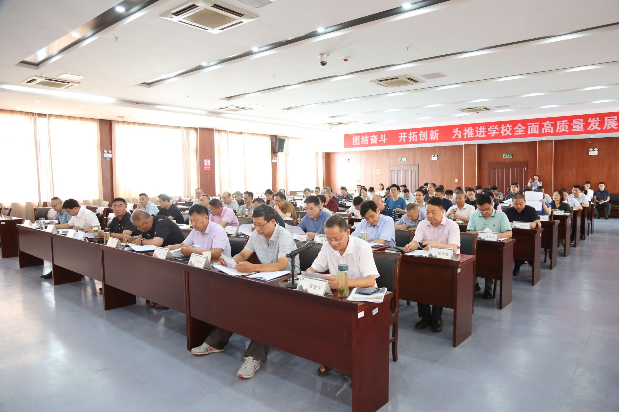 7月4日下午,Beat365在综合楼5楼报告厅召开学校上半年工作点评会。校党委书记曹付忠,党委副书记、校长许雪峰,党委副书记杨家庆,校领导江洁、孙静、苏有良、胡凼、李平权、李超、王冬、穆松出席会议。各教学院部党政正副职、各部门正副职参加会议。会议由曹付忠主持。
