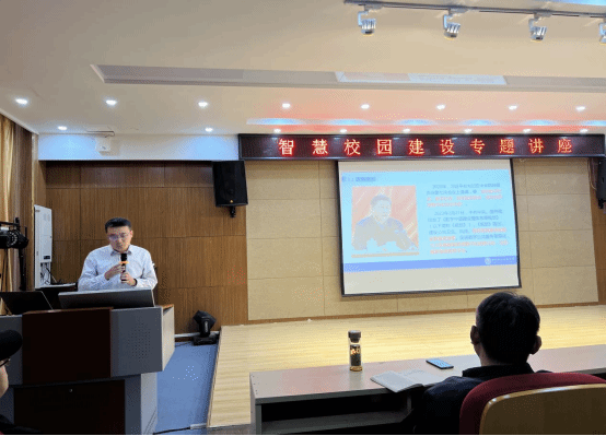 2023年11月1日下午,学校组织召开智慧校园建设专题报告会,芜湖职业技术学院信息化处副处长、高级工程师王钧应邀作了题为《数字化赋能职业教育高质量发展的芜职实践》的专题报告,报告会由校党委委员、副校长胡凼主持,学校各教学院部、各部门分管信息化负责人及信息技术中心全体人员、学生代表等150余人参加会议。
