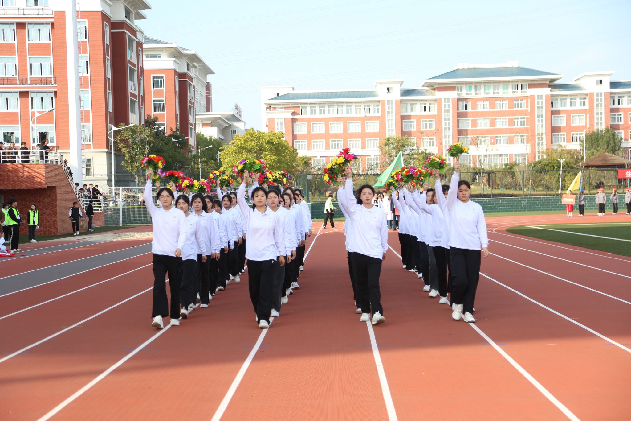 伴随着激昂的《运动员进行曲》,国旗护卫队、校旗会旗队、鲜花方队,裁判员方队、各教学院部师生代表队依次入场,他们以昂扬的姿态,喊着嘹亮的口号,迈着整齐稳重、铿锵有力的步伐走过主席台。