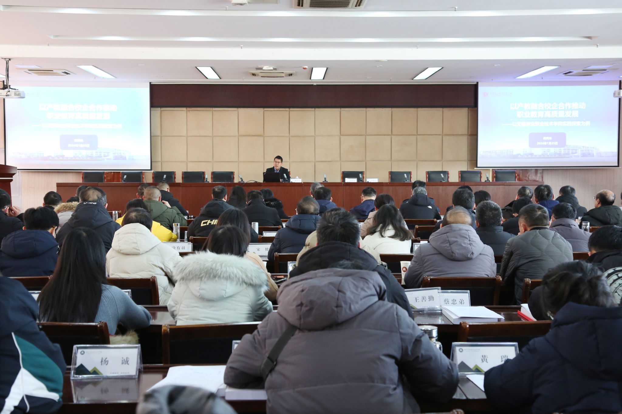 1月25日下午,学校邀请无锡商业职业技术学院副校长、全国商贸职教集团秘书长、研究员周丙洋来校做专题讲座。校领导、各部门正副职、教学院部党政正副职、系(教研室)主任、专业负责人、教授聆听了讲座。讲座由校党委委员、副校长苏有良主持。