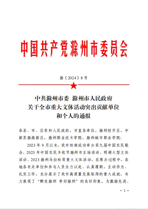 2023年9月以来,滁州市相继举行了一系列重大文体活动。在活动期间,Beat365广大师生积极响应号召,投身到第九届中国农民歌会、2023年滁州马拉松赛等志愿服务工作中去,兢兢业业、恪尽职守,为活动做出了应有的贡献。
