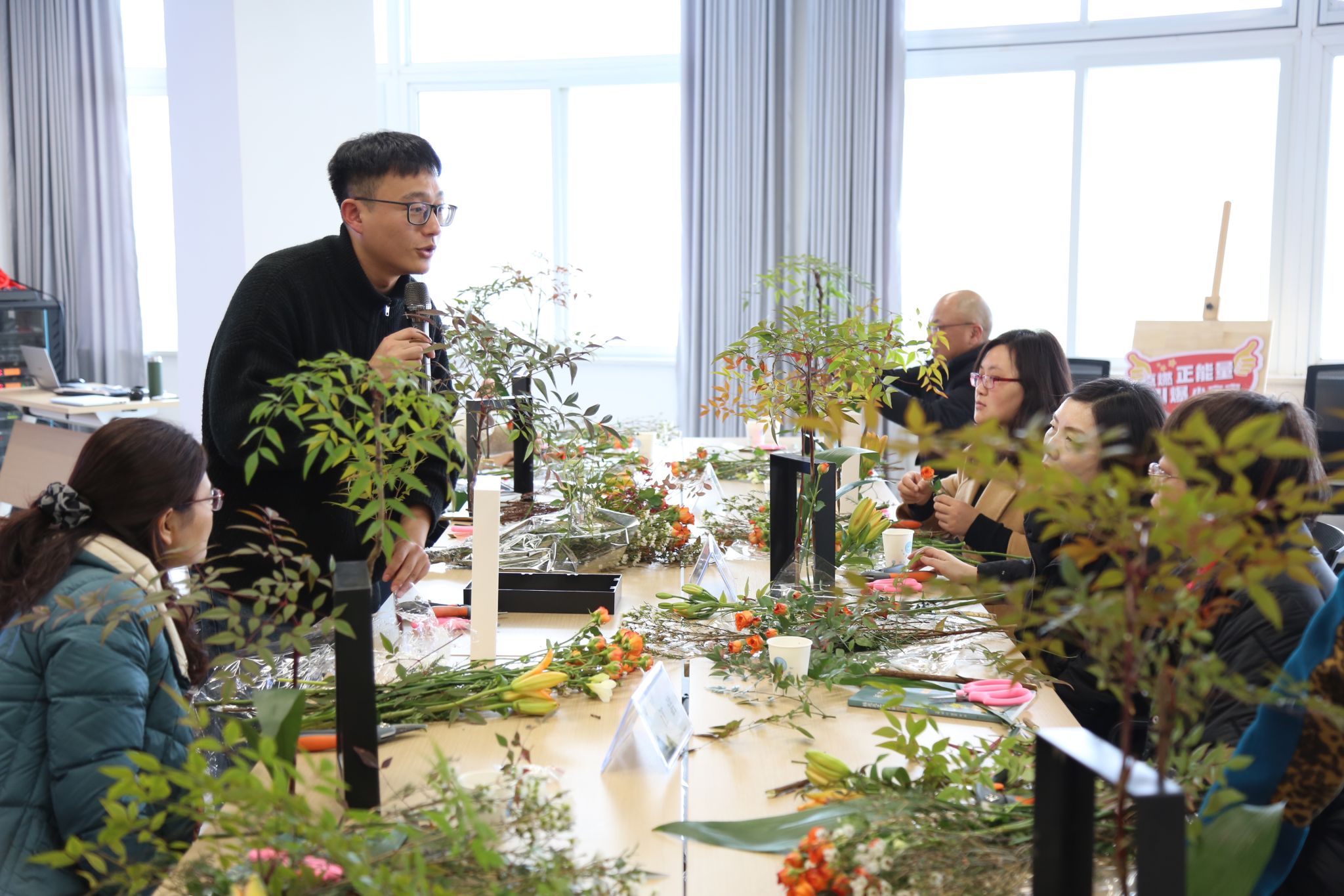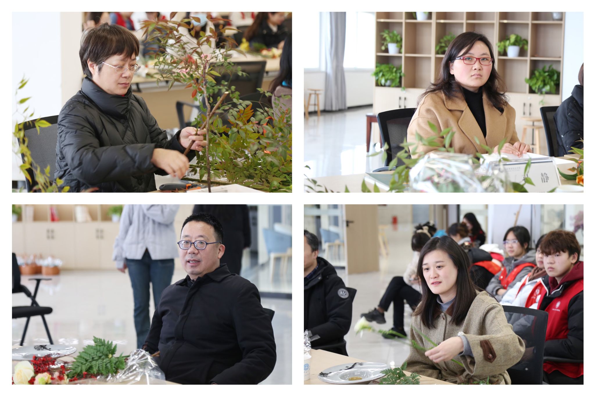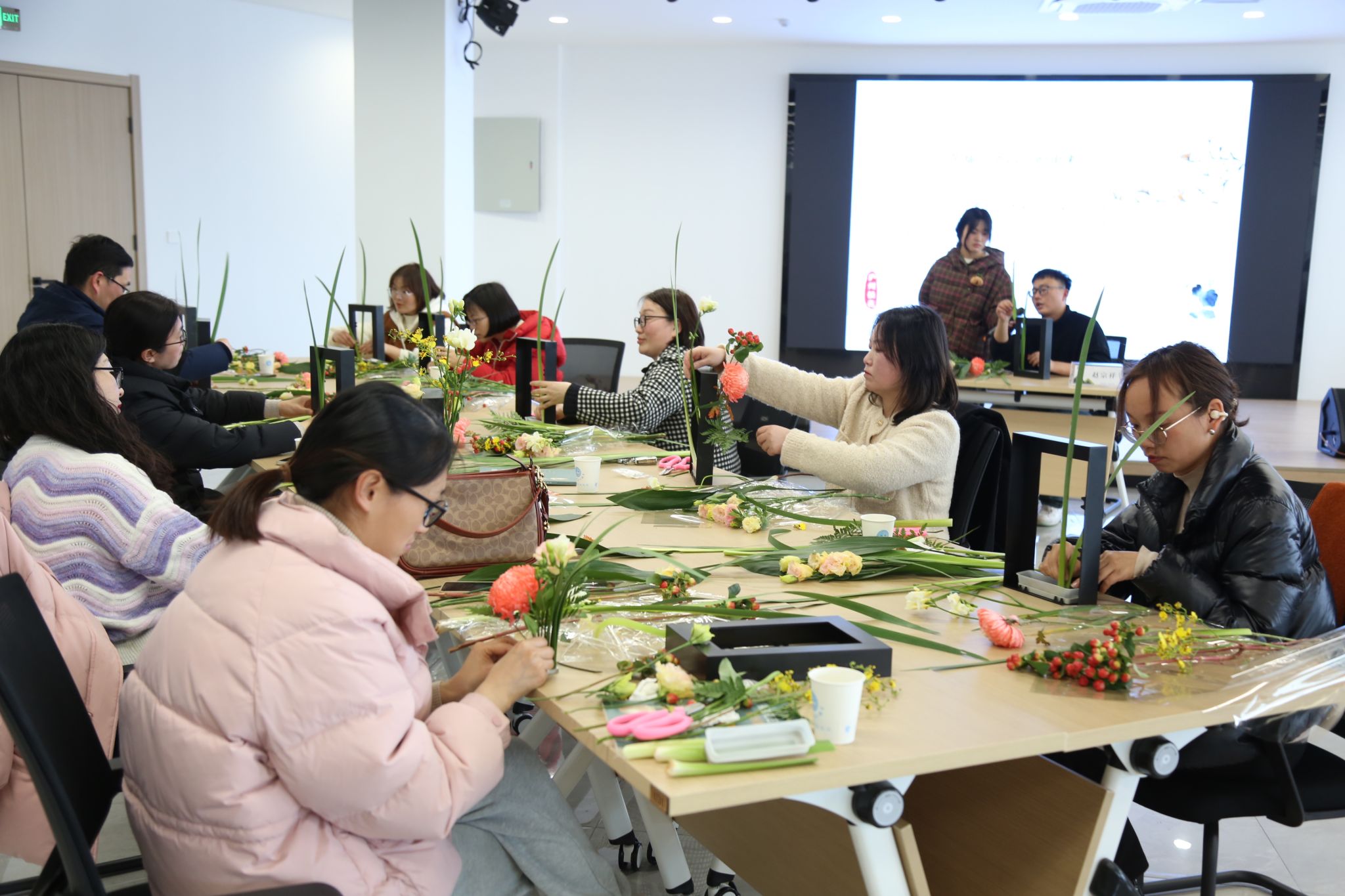 在“魅力巾帼 花漾芳华”花艺活动现场,Beat365食品与环境工程学院教师贾雪晴,从鲜花的种类、插花技巧等方面介绍了插花的理论知识,详细讲解了插花类型、基础造型、花材的基本使用、插花中尺寸的确定与剪裁方法、色彩搭配设计等知识,随后细致地为大家示范插花的步骤。女教职工们认真听讲,热情参与,亲自体验插花的快乐。