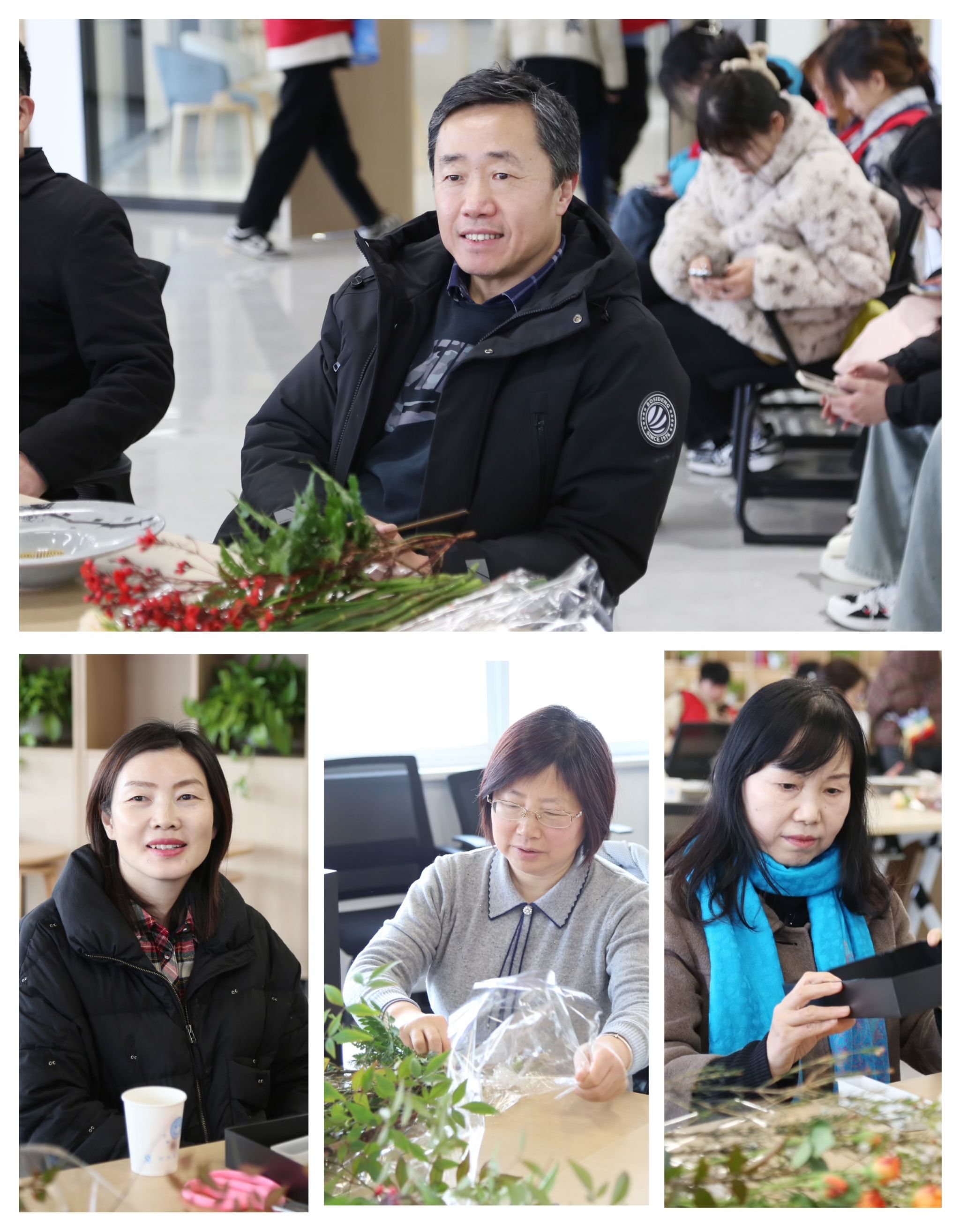 值得一提的是,下午第三场花艺活动——“花语廉心 廉润校园”中国传统插花活动,特别邀请了非物质文化遗产“庐州插花”项目代表性传承人,中国插花花艺名家、安徽省技术能手、安徽省“五一劳动奖章”获得者赵宗祥现场授课。赵宗祥从中式插花的历史背景、艺术特色、制作的方法、插花技巧等方面详细讲解了中国传统插花的艺术底蕴和精神风韵。根据中式插花追求意趣之美的特点,女教职工们在一花一木的世界里,利用盘器、剑山、花材的巧妙搭配,遵循崇尚自然的创作法则,呈现出一件件高低错落、清雅流畅的花艺作品。