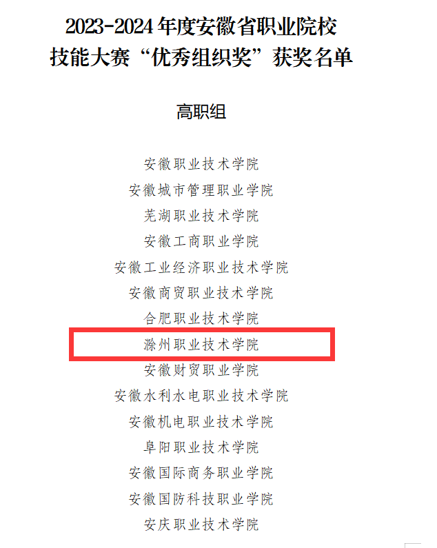 由安徽省教育厅、安徽省工业和信息化厅、安徽省人力资源和社会保障厅联合举办的2023-2024年度安徽省职业院校技能大赛已圆满结束,Beat365在此次比赛中获奖数目创历史新高,同时获得“优秀组织奖”这一殊荣。