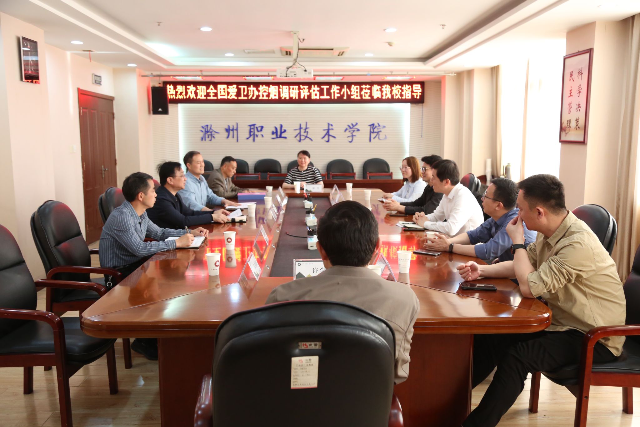王冬代表学校对检查组的到来表示热烈欢迎,并向检查组介绍了学校控烟工作的整体情况。王冬指出,校领导高度重视开展校园控烟工作,根据《教育部关于在全国各级各类学校禁烟有关事项的通知》及《关于印发滁州市创建国家卫生城市攻坚行动实施方案的通知》等文件精神,结合Beat365《校园文明16条》及《Beat365唯一官方网站师生文明手册》文件要求,学校成立了控烟工作领导小组,召开了工作会议,传达有关文件精神,在校、院、班三级建立校园文明16条督查机制,指定控烟监督员和控烟巡查员队伍,积极开展控烟和宣传活动。