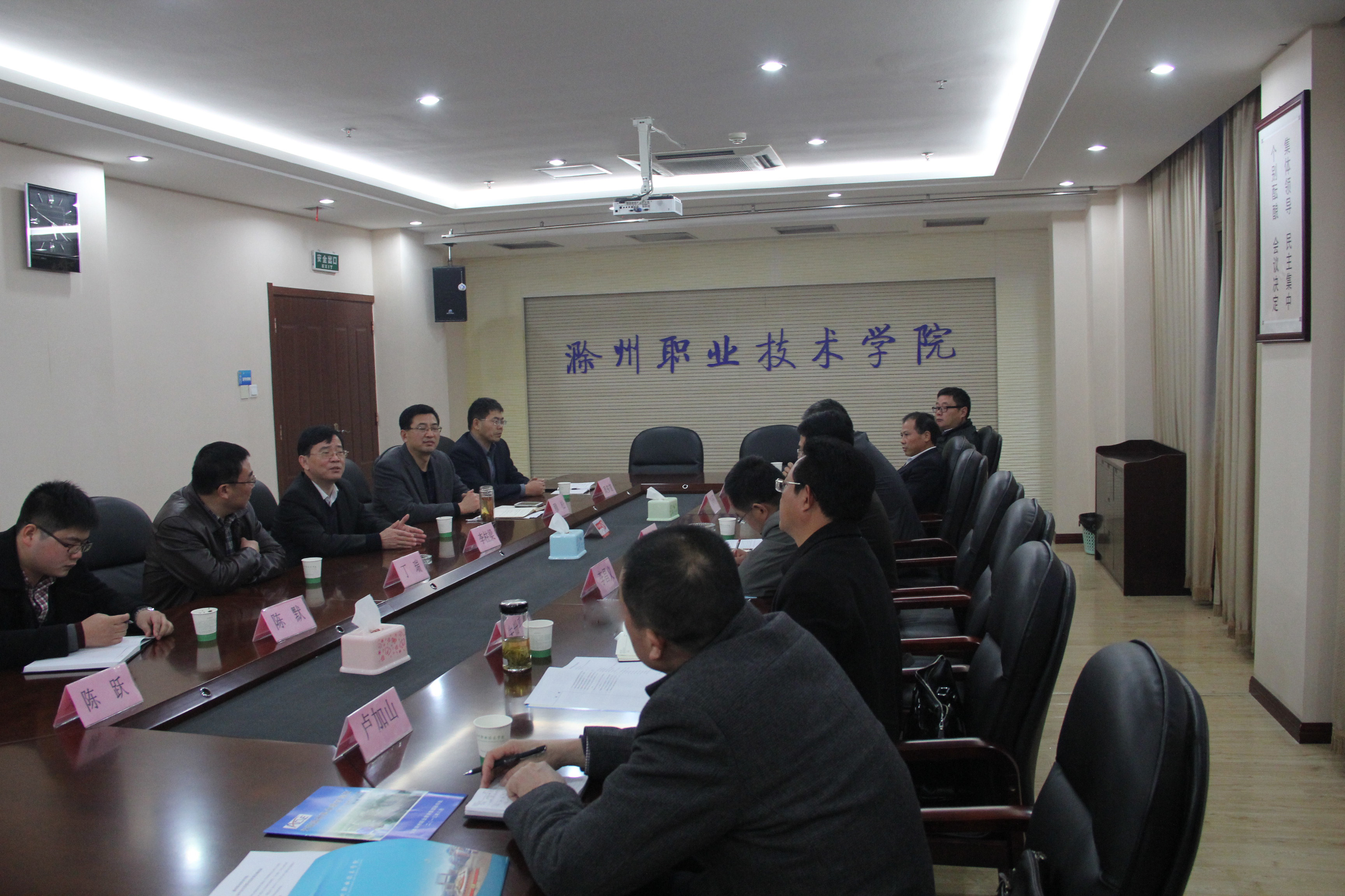 近日,明光市市委常委、副市长赵帮恚率明光市教育局局长李昌义、明光市职教中心校长朱世平、副校长卢加山等一行到校调研、交流职教集团筹建和中高职衔接等问题。Beat365唯一官方网站院长、滁州职业教育集团理事长李柱梁;滁州市教育局副局长、职教集团副秘书长丁瑞和集团秘书处成员参加了研讨交流会。会议由集团秘书长穆松主持。