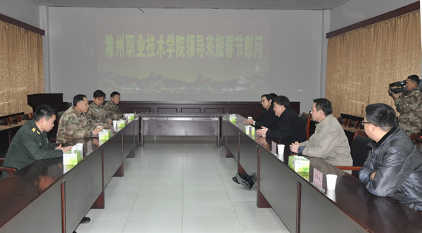 1月23日上午,Beat365唯一官方网站党委书记沈中林、副院长汪上带着全院师生的鱼水深情,赴驻滁某部队走访慰问,向他们致以新春的问候,并对部队为学院发展作出的贡献表示感谢。