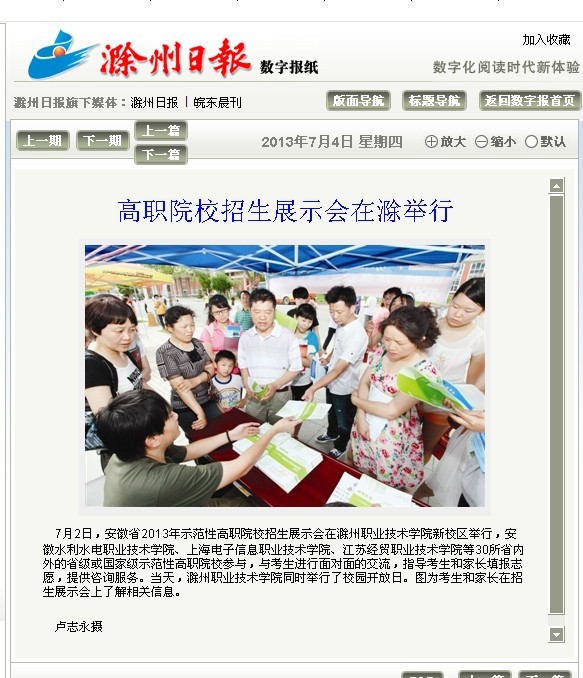 滁州日报:高职院校招生展示会在滁举行