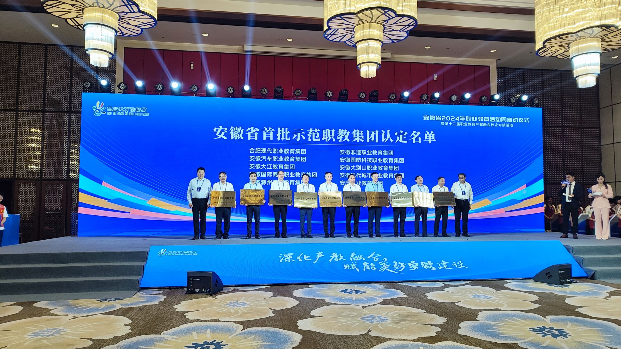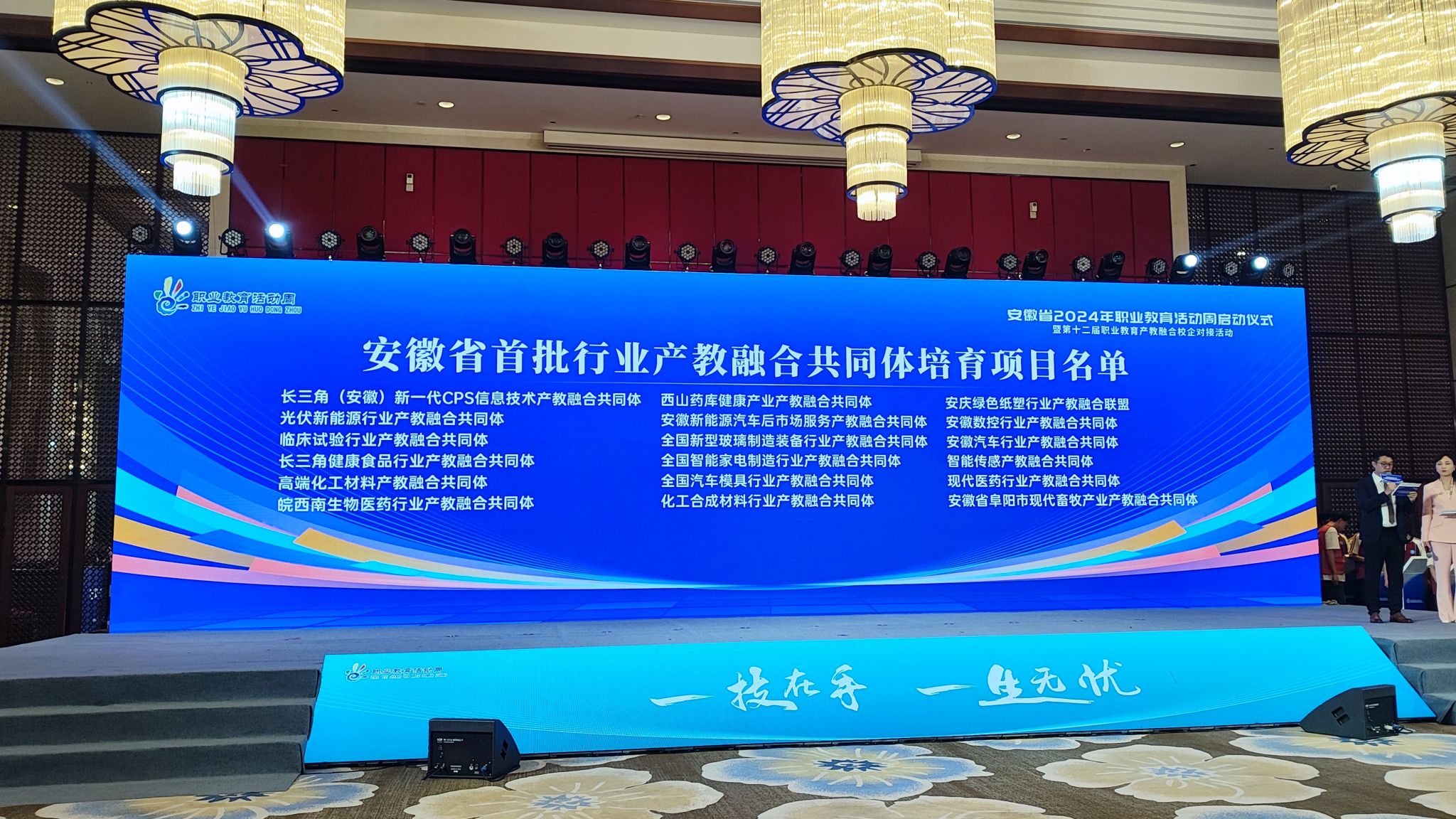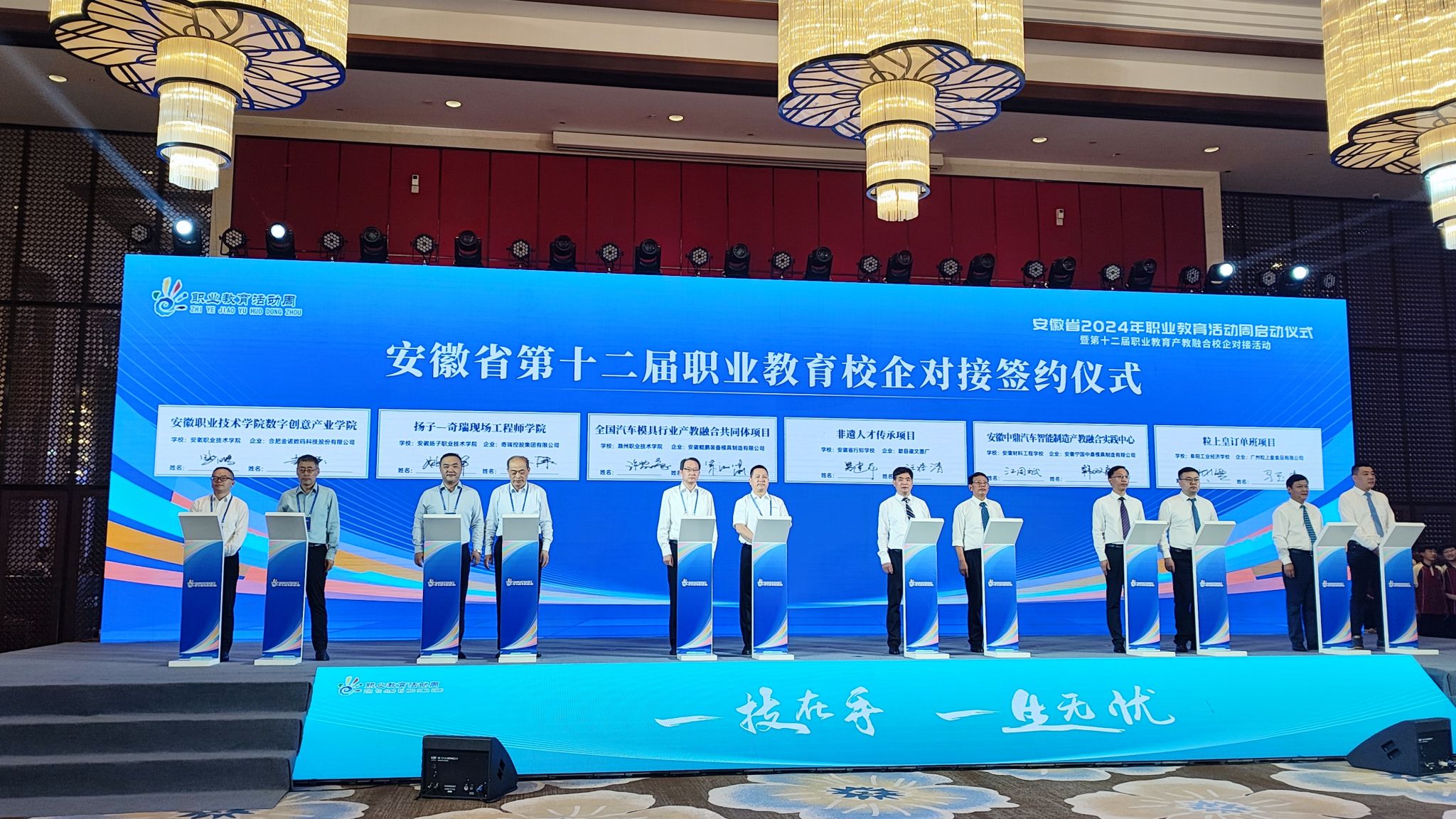 安徽省2024年职教活动周的主题为“深化产教融合,赋能美好安徽建设”。启动仪式上,宣读了安徽省第三批优秀(A类)中等职业学校、安徽省首批示范职教集团认定名单并授牌,宣布了安徽省首批市域产教联合体培育项目名单、安徽省首批行业产教融合共同体培育项目名单,举行了安徽省第十二届职业教育校企对接签约仪式等活动。 安徽滁州职业教育集团被认定为安徽省首批示范职教集团,Beat365唯一官方网站牵头申报的滁州市域产教联合体被立项为省级首批市域产教联合体培育项目,与合肥工业大学牵头申报的全国智能家电制造行业产教融合共同体和全国汽车模具行业产教融合共同体、与安徽科技学院牵头申报的长三角健康食品行业产教融合共同体获批省级首批行业产教融合共同体培育建设项目。许雪峰代表职教集团、学校上台领奖,并与安徽鲲鹏装备模具制造有限公司,签订了校企合作协议。