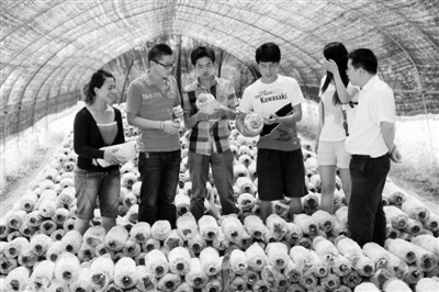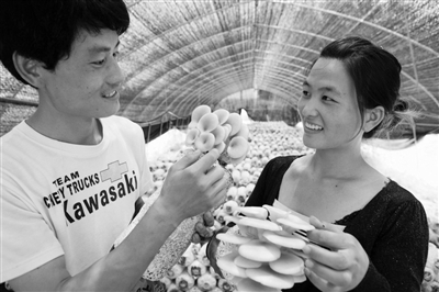 大学生创业显身手 蘑菇棚荡漾爱情歌