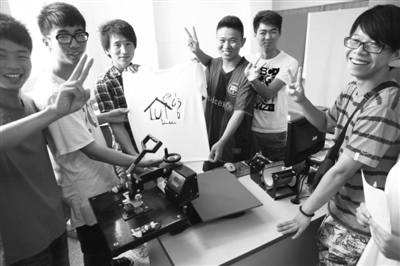 号称“红楼忆梦”团队的几位“小老板”王博文、杨祖桓、宋宏卫、纪承团结创业,影像设计、数码软件、快递业务,主营个性化数码瓷器、服装、拷印工艺,近月内,已为各校区学生制印时尚纪念衫数千件,成绩斐然。