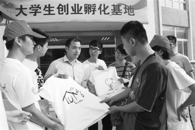 今年三月创业园孵化基地开园,省教育厅主要领导前来祝贺,并与大学生“小老板”切磋交流