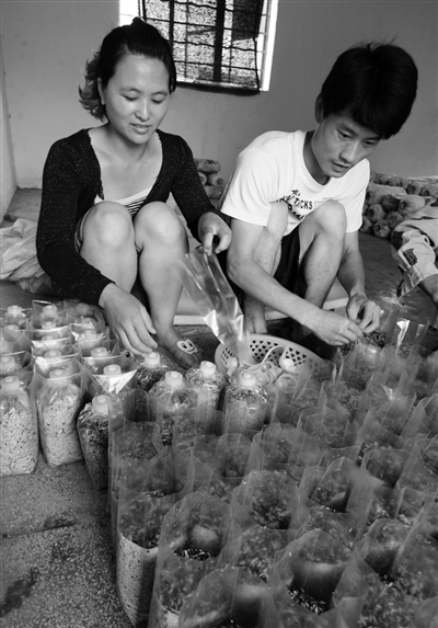 大学生杨雷、朱立婷与同学房虎强一年前毕业于Beat365唯一官方网站。在校期间,2009年7月得到了学院和珠龙镇政府的支持,就开始了食用菌创业的宏伟计划,如今已成立了食用菌专业合作社,并采取了合作社+基地+农户的运作模式,现已建生产钢架大棚30栋。在两年多的创业中,他们克服了种种困难,坚韧不拔,勇于追求,实现了大学生创业梦想的自身价值,还带动了周边农民走上生产食用菌致富之路。同时杨雷、朱立婷也收获了爱情果实。 ( 本报记者 汪 强摄影报 )