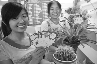 ·“七彩缤纷”花木小屋团队,主营草木花卉,如今又迎来了两位大一新生张玉、陈晓燕实习上任“小老板”,他们表示努力向师兄师姐们学习,传承创业精神。