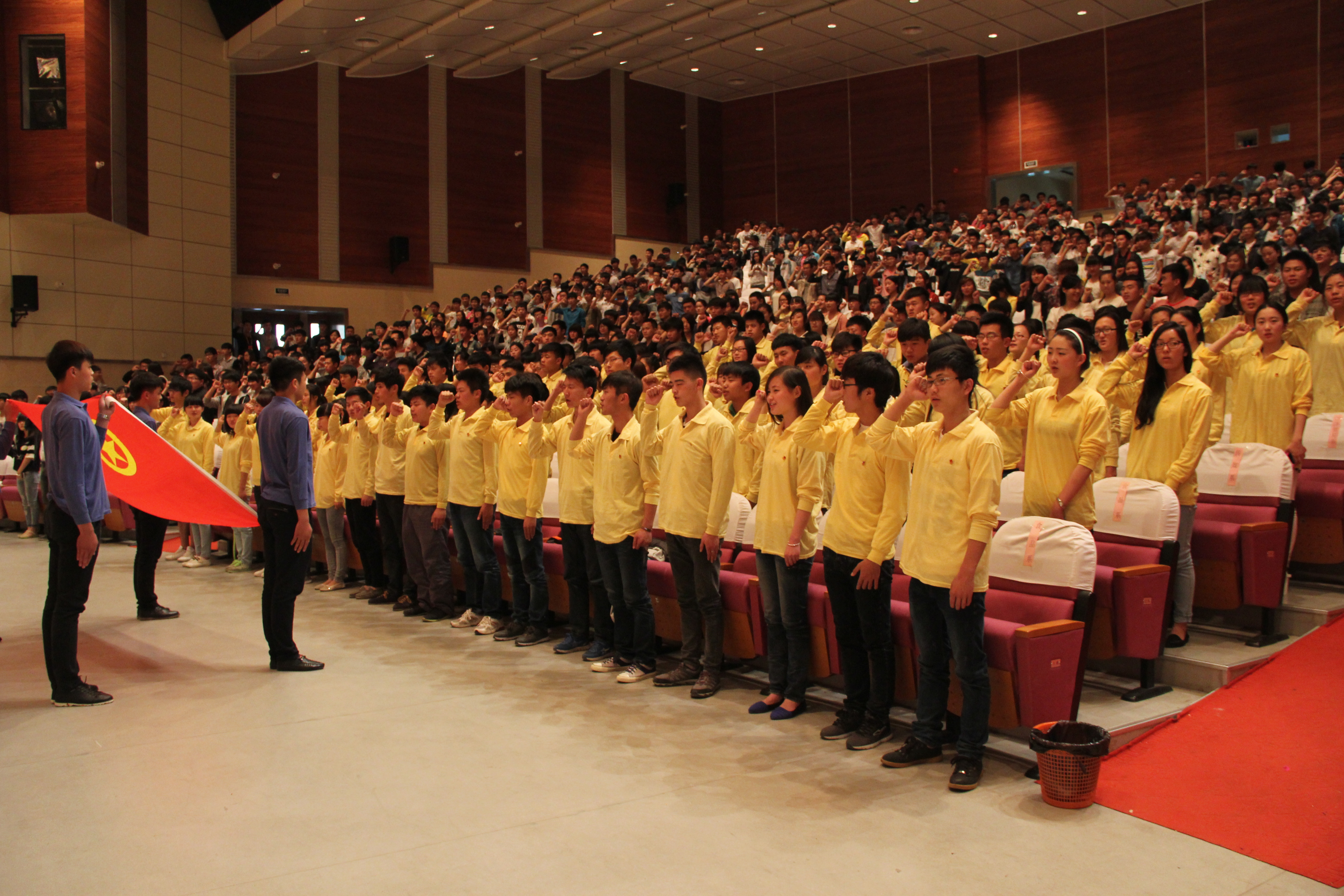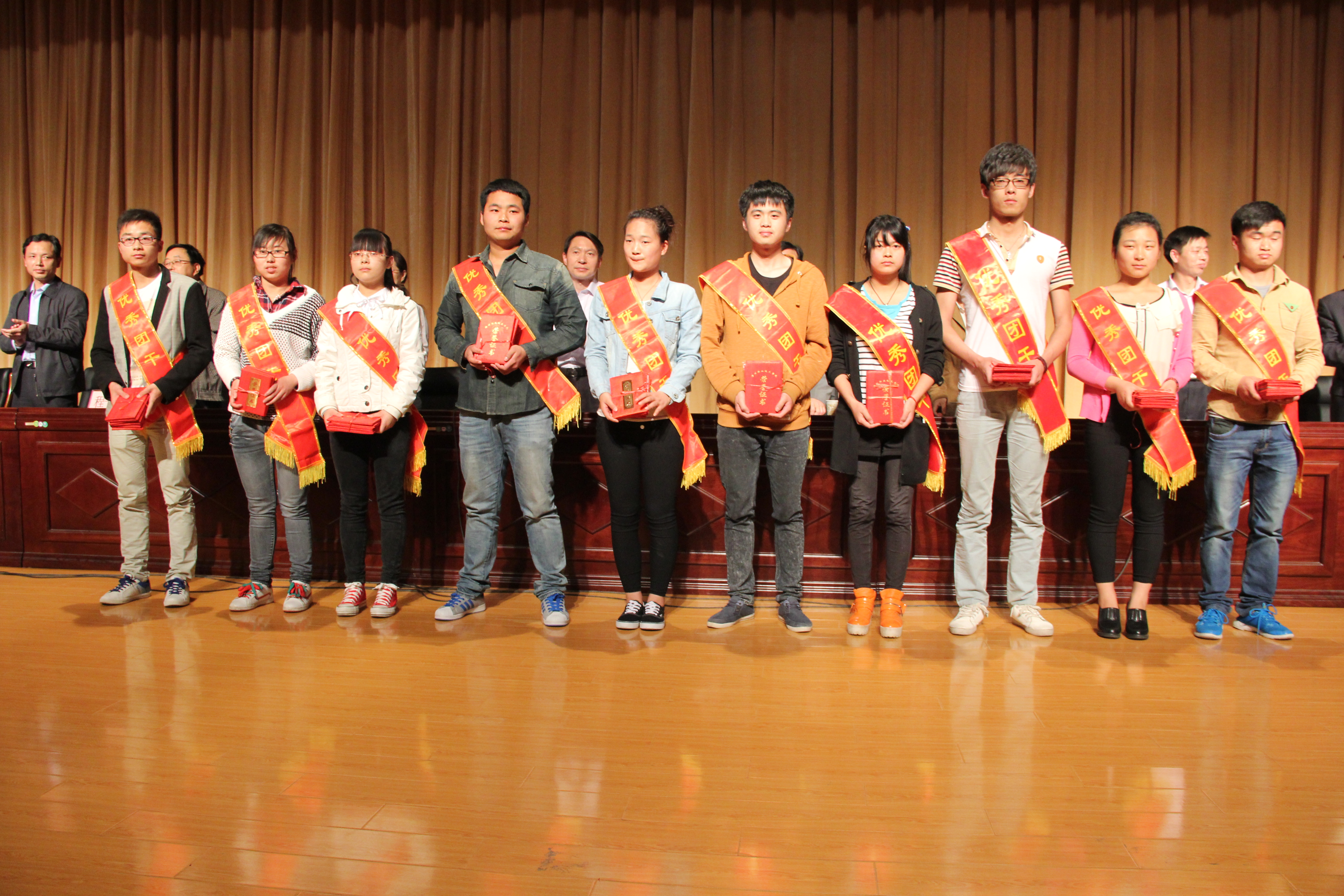 表彰大会在雄壮的国歌声中拉开帷幕。在食品与环境工程系夏磊同学的带领下,全场千名新老团员一起重温入团誓词。接着对2013年度团的工作中表现出色的47个先进团支部、114名优秀团干、469名优秀团员代表进行了表彰。