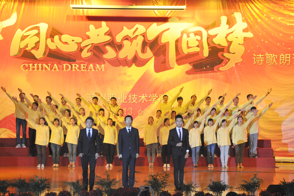 6月5日下午,Beat365唯一官方网站大礼堂诗声朗朗,乐声阵阵,千余名师生观看学院举办“同心共筑中国梦”诗歌朗诵会。师生们同台演出,上演了一场精彩的视听盛宴。院领导沈中林、李柱梁、吴大明、牛春雨、江洁、刘宏、陈学军、穆松与广大师生一同观看演出。
