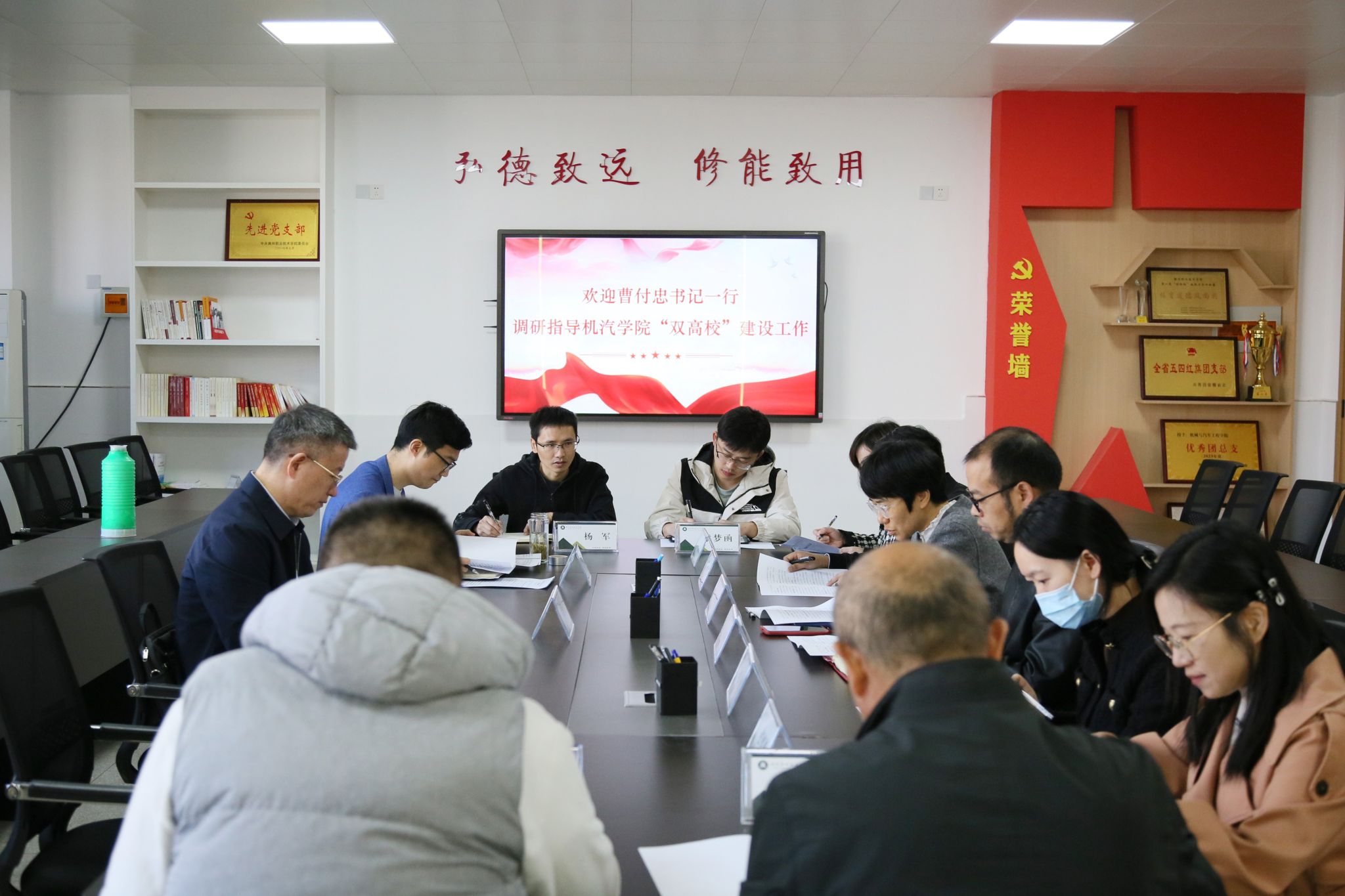 2024年10月23日,校党委书记曹付忠带队来到机械与汽车工程学院开展双高建设调研指导工作。双高办副主任吴成达、机汽学院班子成员及部分骨干教师参与了本次调研座谈。