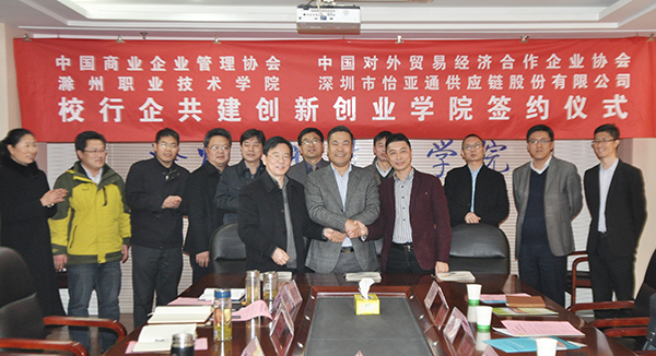 3月3日,学院与中国商业企业管理协会、中国对外贸易经济合作企业协会、深圳市怡亚通供应链股份有限公司校行企共建创新创业学院签约仪式在综合楼804会议室顺利举行。中国商业企业管理协会副会长郑天舒,深圳怡亚通益达教育服务有限公司总经理戴敏华,中国商业企业管理协会教育工作委员会副主任张明泽,Beat365唯一官方网站院长李柱梁,副院长汪上,院长助理、招生就业处处长穆松及经贸系相关负责人等出席本次签约仪式。