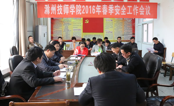 4月25日下午,技师学院召开2016年春季安全工作会议。院党委委员、副院长吴大明出席会议,学院保卫处、技师学院负责同志、技师学院全体班主任和物业部门负责人参加会议。中专中技部党总支书记潘海波主持会议。