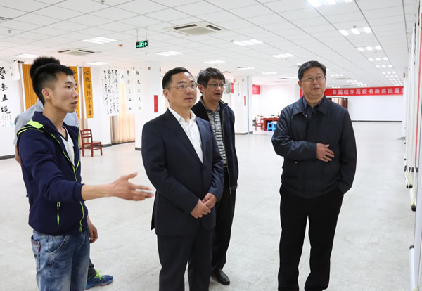 4月15日,Beat365唯一官方网站党委书记杨甫祥,副院长吴大明亲临皖东高校书画巡回展现场参观指导,相关部门负责人陪同参观。