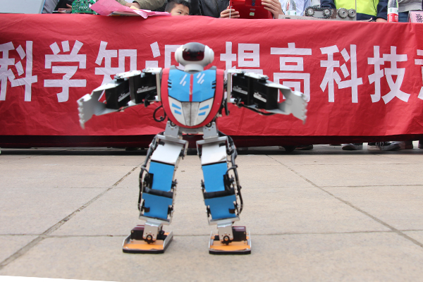 在启动仪式现场,学院展示了师生共同研发的科技作品,有信息系刘青老师带队研发的“舞蹈机器人”、“智能家居”、“智能小车”,有汽车系廖玉松老师带队研发的“一种机械传动演示台”发明专利产品,这些饱含我院师生创造智慧的科技产品很快吸引了大家的眼球。副市长金力等市、县、区、领导在我院展台兴趣盎然地观看了机器人惟妙惟肖的舞蹈表演,金副市长对我院师生的科技创新意识和能力大加赞赏,并鼓励师生们,机器人舞蹈可以再探索创新,比如设置双人舞蹈,效果会更好。一位观展的市民则赞不绝口,连声说:不简单!不简单!没想到我们本地职业院校学生能做出这样的产品!