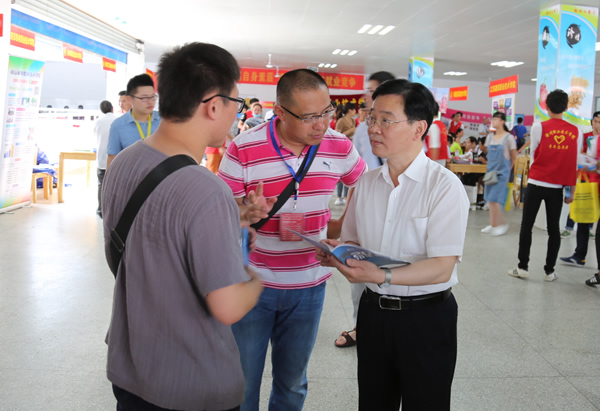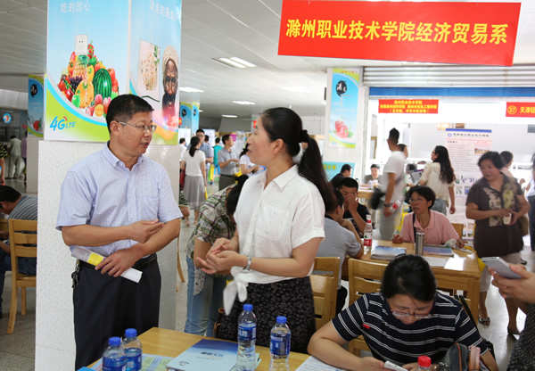 6月30日上午,由安徽省教育招生考试院主办、滁州市教育体育局和Beat365唯一官方网站承办的示范性高职院校专场咨询会在Beat365唯一官方网站新校区隆重举办。安徽省教育招生考试院院长助理兼普通高校招生处处长袁江林莅临学院指导工作。Beat365唯一官方网站领导李柱梁、吴大明、程一斌、江洁、汪上、穆松亲临咨询会现场为考生和家长答疑解惑,来自省内外40余所高职院校与来自滁州及周边地区的3000多名考生和家长面对面交流,为他们提供高考志愿填报指导。